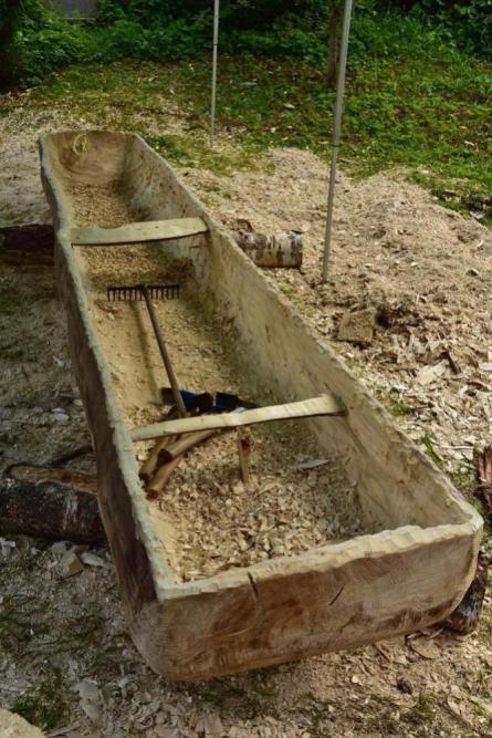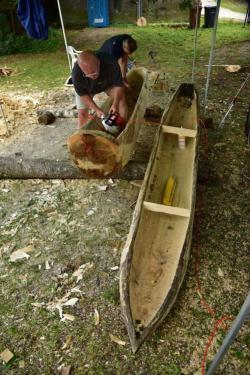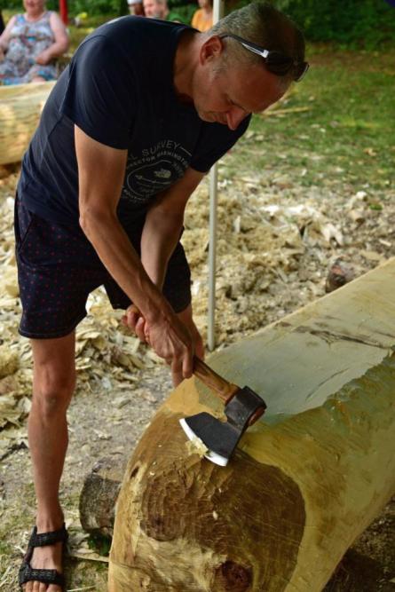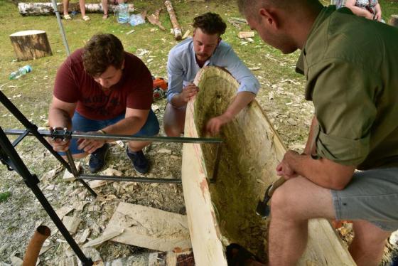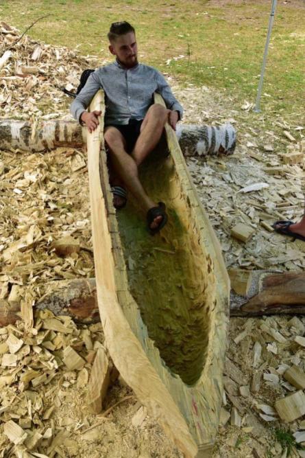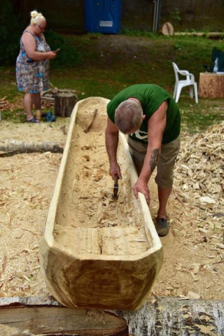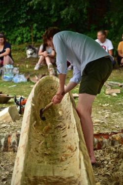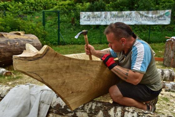 Jak się okazuje, w czasie wakacyjnym nie tylko kąpiele w mazurskich jeziorach i zwiedzanie atrakcyjnych turystycznie miejsc jest przyjemnym doznaniem, ale również wydrążanie ciosłem wnętrza topolowego pnia. Daje to wiele satysfakcji, kiedy z każdą godziną pracy widać coraz to doskonalszą dłubankę.