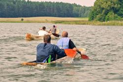 Ponad 60 uczestników wzięło udział w tegorocznym „Święcie Mazurskiej Dłubanki”. Pod okiem instruktora powstało 6 łodzi jednopiennych, tzw. dłubanek, które wystartowały w widowiskowych regatach na jeziorze Spychowskim ostatniego dnia warsztatów.