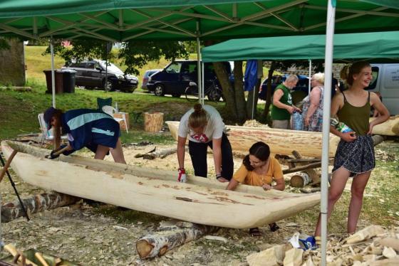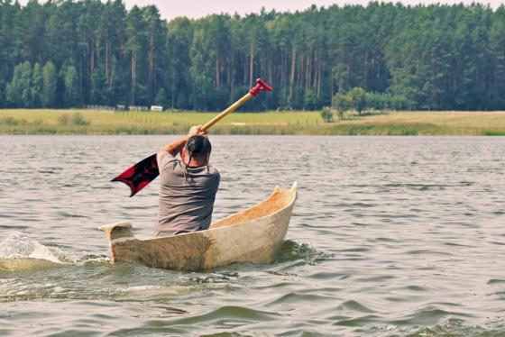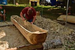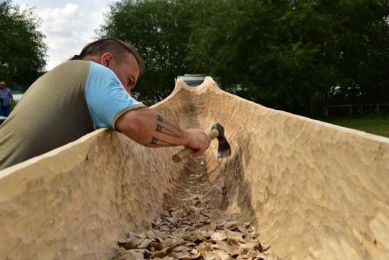 Jak się okazuje, w czasie wakacyjnym nie tylko kąpiele w mazurskich jeziorach i zwiedzanie atrakcyjnych turystycznie miejsc jest przyjemnym doznaniem, ale również wydrążanie ciosłem wnętrza topolowego pnia. Daje to wiele satysfakcji, kiedy z każdą godziną pracy widać coraz to doskonalszą dłubankę.