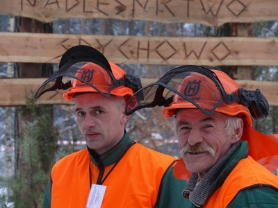 W środku lasu, na drodze podobnej do innych leśnych dróg zebrało się grono kolorowo ubranych osób. Jak nakazuje instrukcja bhp wszyscy uczestnicy i obserwatorzy ubrani byli w odblaskowe kamizelki, drwale - pomarańczowe, leśnicy – zielone. Do tego na poboczu rozstawione zostały stoiska promocyjne dwóch wiodących firm produkujących sprzęt do pozyskania drewna : Husqvarna i Stihl. To wszystko w pięknej zimowej scenerii wyglądało niezwykle atrakcyjnie.