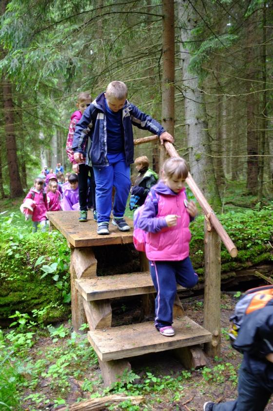 Dodatkowe wyposażenie: kładki przez tereny podmokłe, przełazy nad pniami powalonych drzew, ławki